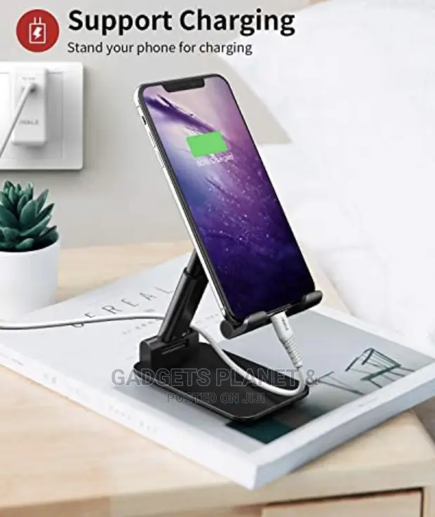 Material Silicone, Hard quality plastic Special feature Adjustable,Travel,Foldable Super Sturdy and Fully Protective Silicone PadThe adjustable phone holder stand with exquisite plastic body, can hold your phone steadily. Fully covered top silicone pads and quality weighted anti-slip base well protect your devices from scratches and sliding. Foldable & Portable It's ideal for watching video, reading and studying, playing games, making video phone calls and video conferences, using Facetime and watching YouTube. PHONE STAND WITH USER-FRIENDLY DESIGNThere is a reserved charging hole convenient for you to charge your devices while using this stand. Universal CompatibilityThe adjustable cell phone stand fits for Nintendo Switch and all size of smartphones & tablets even with the case.