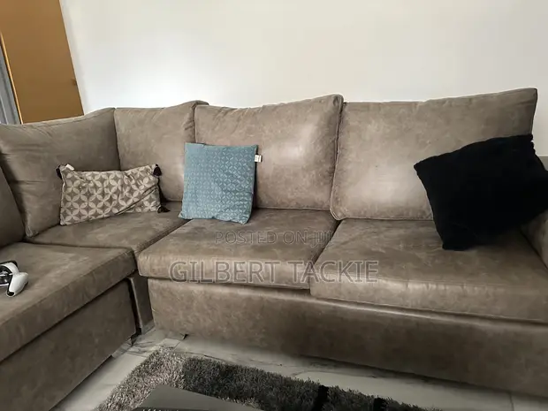 Wood-Mode Brand Sofas Type Living Room Room Used Condition Brown Color Leather Material Square Shape Indoor Place of Use 8 Seating Capacity Sleeper Sofas Sofas Subtype A very neatly used 6 seater leather square couch available for sale.Comes with extra resting couch (L shape)